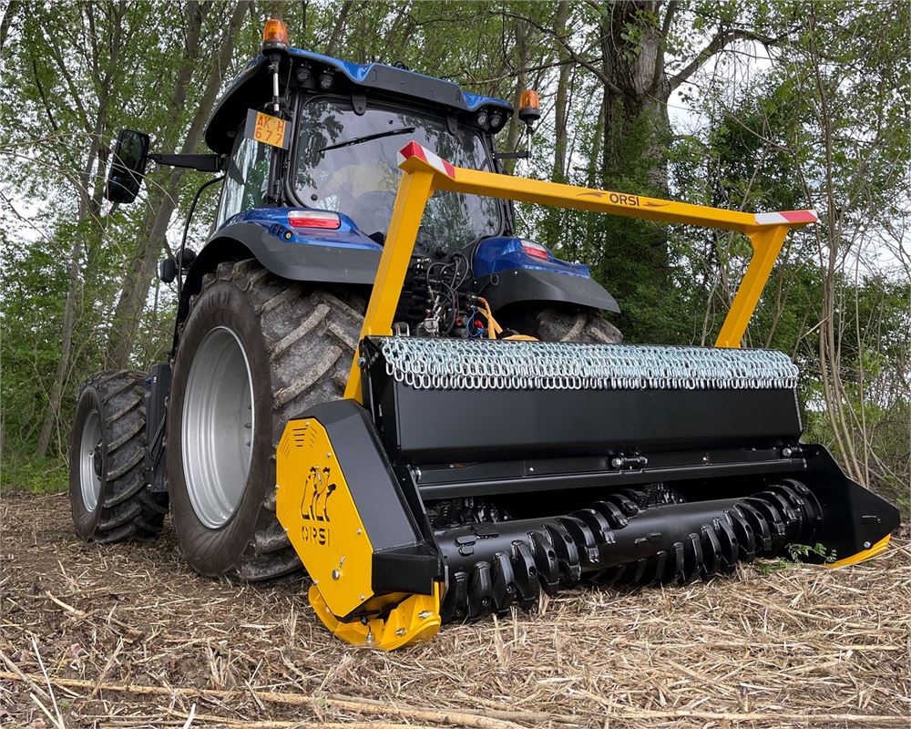 ORSI est également l’un des acteurs européens les plus solides dans le domaine du broyage forestier. Les machines destinées aux tracteurs, pelles et chargeuses sont conçues pour intervenir sur les environnements les plus difficiles : ronces épaisses, ligneux, résidus d’exploitation, souches légères ou préparation de pistes forestières. Leur structure renforcée, leurs marteaux en carbure et leurs rotors à forte inertie garantissent une capacité de broyage élevée, associée à une excellente résistance aux chocs. Ces broyeurs permettent de travailler rapidement tout en maintenant un niveau de sécurité élevé pour l’opérateur.