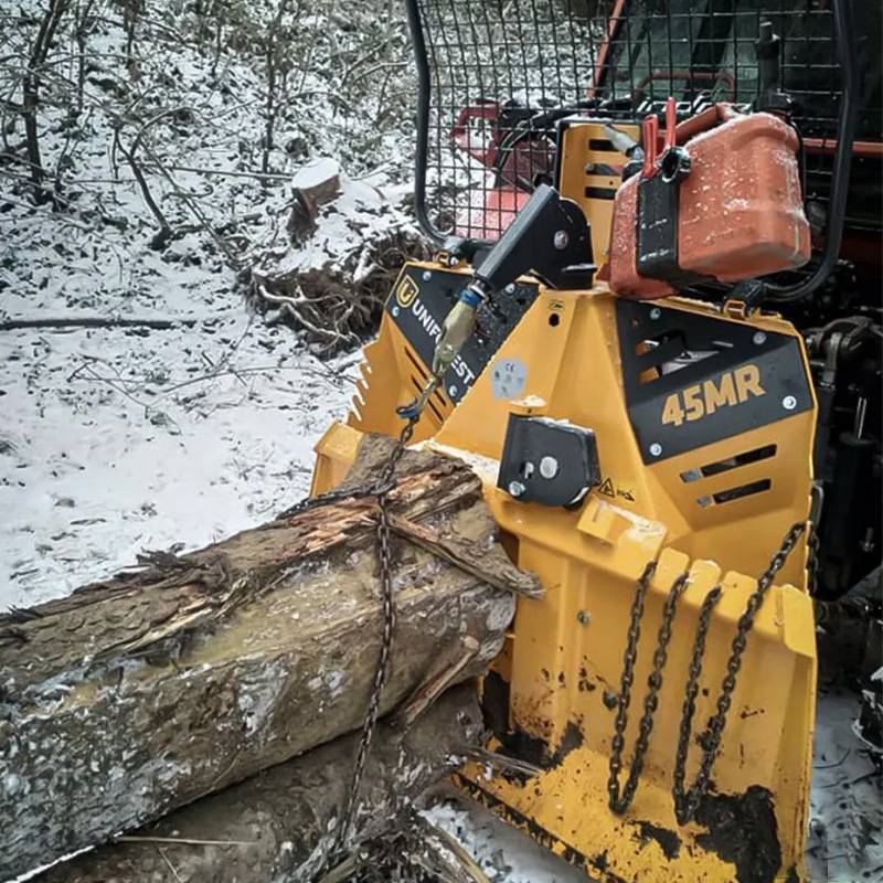 Le modèle de treuil forestier mécanique standard 45 M assure une traction efficace, tandis que la variante 45 MR est équipée d'un réducteur intégré.